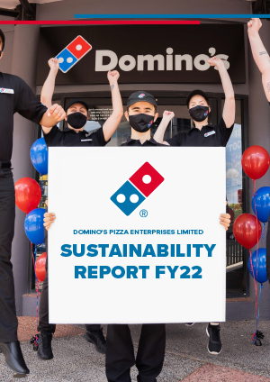 The Domino’s Board consists of our Group CEO and Managing Director and six non-executive Directors, five of whom are independent. This corporate governance system is oriented towards the goal of sustainable success, and it is aimed at creating long-term value for our shareholders. In FY22, we created our ESG Steering Committee, which meets on a quarterly basis. This governing body assumes the pivotal role of supervising the execution of our ESG strategy throughout our operations, oversees compliance with sustainability related regulation and frameworks, and provides counsel to the Board of Directors regarding the progress of our ESG approach. We recognise that our operations impact the environment and society in the markets in which we operate. Our key focus, which is integrated into our ESG approach, is to take are of our people and deliver fast, high-quality and affordable food to our customers as we substantially reduce our carbon footprint. We focus on the issues that are most material for our business and where we can achieve the greatest impact. This is our Domino’s for Good strategy.